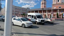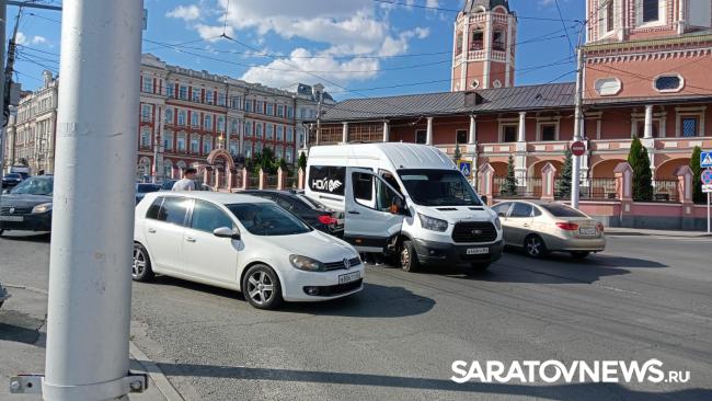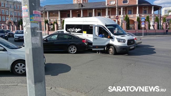 Несколько минут назад в Саратове произошло ДТП. На Музейной площади автомобиль столкнулся с междугородним маршрутным такси.