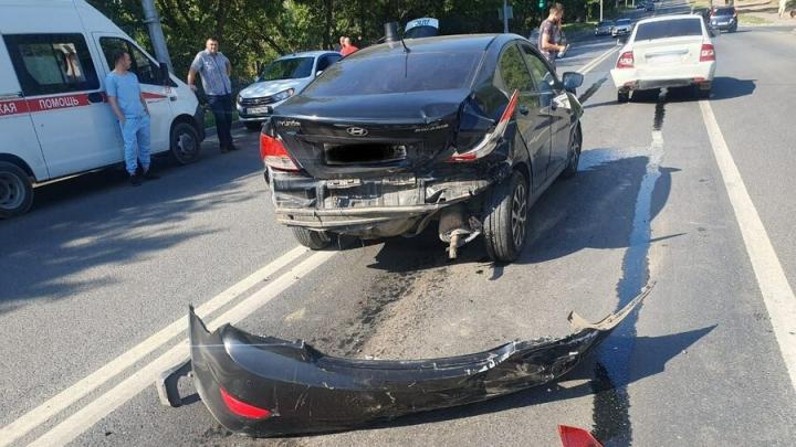 Примерно три часа назад в Заводском районе Саратова произошло тройное ДТП. У автомойки (Новоастраханское шоссе, 65Д, строение 1) столкнулись автомобили BMW, Hyundai Solaris и "Лада Приора".