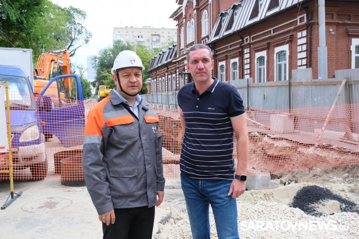 Исполняющий обязанности директора Саратовского филиала «Т Плюс» Андрей Гусятников и председатель комитета по вопросам жилищной, строительной и коммунальной политики регионального парламента Александр Бурмак проверили ход модернизации тепломагистралей на улицах Лермонтова, Вольской и Чернышевского.