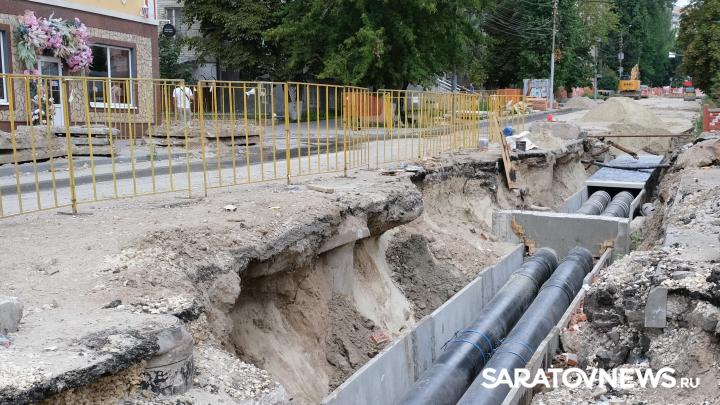 На улице Чернышевского выполнена практически половина от всего объема мероприятий, смонтировано 380 м новых труб. Сейчас работы завершаются на участке от Новоузенской до Шелковичной. На объекте ведется перекрытие канала, выполняется гидроизоляция и подготовка к обратной засыпке и благоустройству. Открыть движение для транспорта планируется ко 2 августа. Одновременно производится монтаж временной схемы горячего водоснабжения для обеспечения ресурсом жителей на время выполнения следующего этапа ремонта - от Новоузенской до 2 Садовой. Здесь энергетики уже приступили к земляным работам.