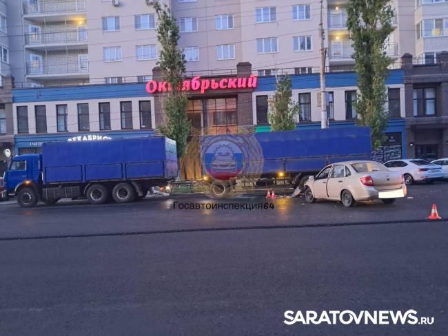 В Октябрьском районе Саратова 26 июля произошло тройное ДТП. Примерно в 1:40 на улице Чернышевского, 59 столкнулись автомобили "Лада Гранта" и "ВАЗ-2110". Машинами управляли 25-летние водители. После удара "Гранта" врезалась в припаркованный "КамАЗ". Водителя в грузовике не было.