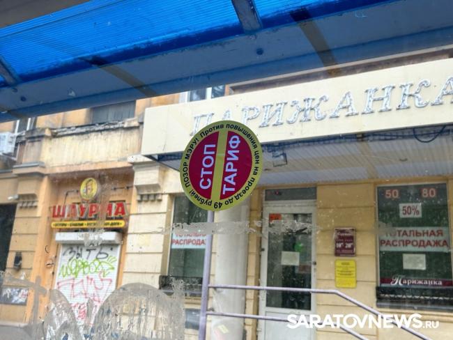 В Саратове набирает обороты общественное недовольство в связи с повышением стоимости проезда в общественном транспорте. На городских остановках появились яркие наклейки с лозунгами против этого решения.