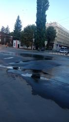 По словам горожан, за полмесяца коммунальная авария не была устранена и вода продолжает скапливаться на проезжей части.
