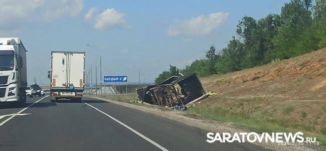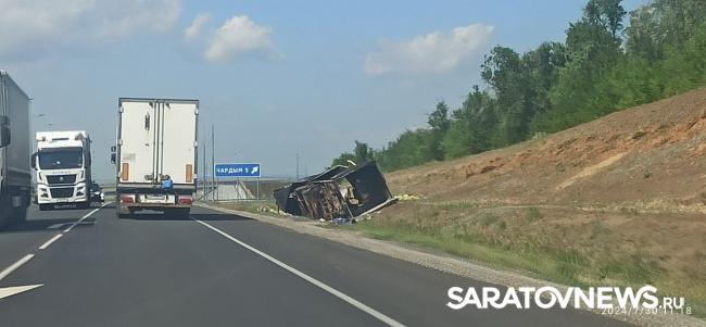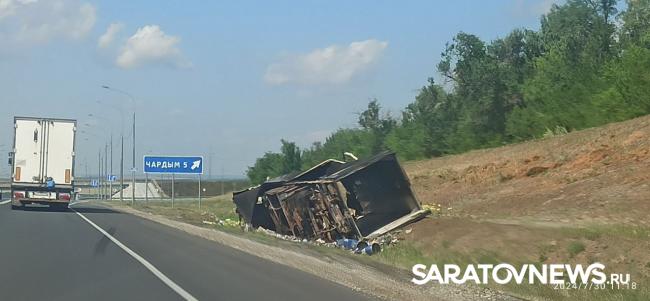 В Воскресенском районе Саратовской области перевернулась и дотла сгорела фура. ЧП произошло у поворота на село Чардым. Грузовик выгорел полностью, сообщают очевидцы.