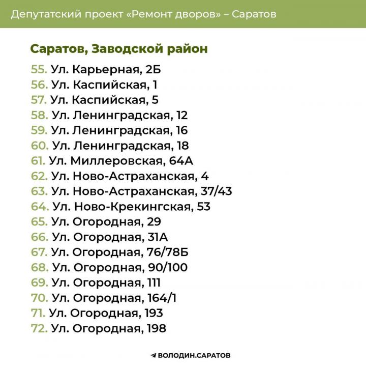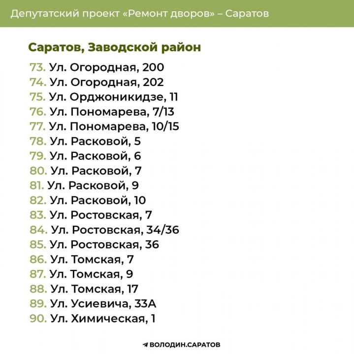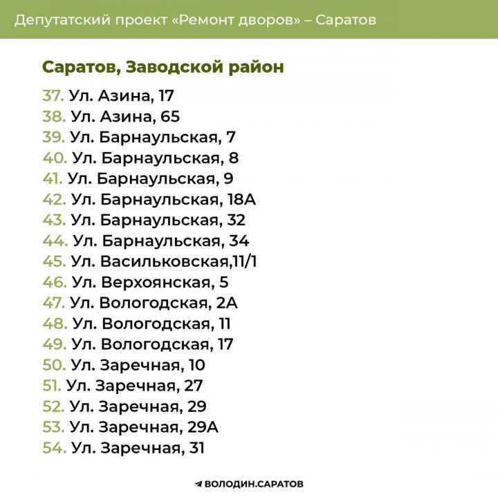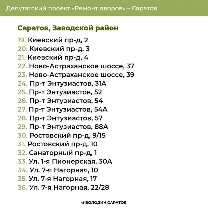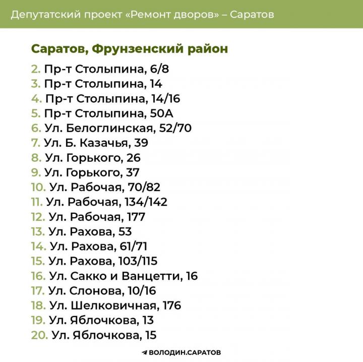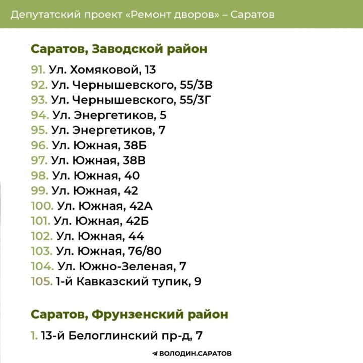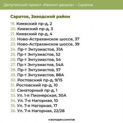 Проект «Ремонт дворов» реализуется в Саратовской области с поддержкой Вячеслава Володина. В 2024 году проект будет реализован в два этапа, в общей сложности будет отремонтировано 400 дворов. На данный момент работы завершены на 204 объектах.