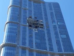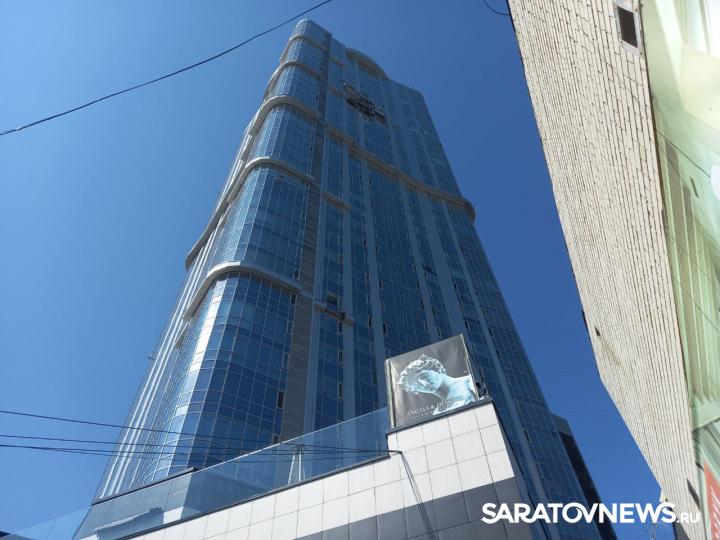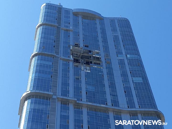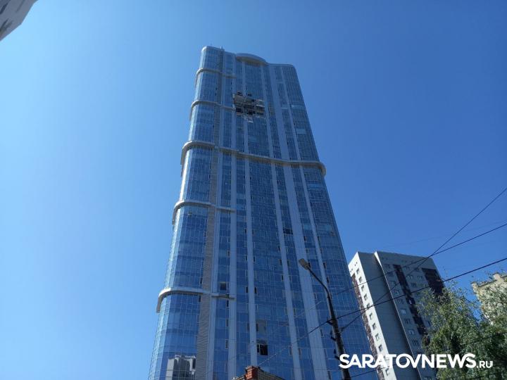 В районе саратовской высотки «Volga Sky», где зияет дыра от вчерашней атаки беспилотника, наблюдаются зеваки. В основном это подростки.
