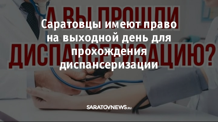 Жителям Саратовской области напомнили об их праве на выходной день для прохождения диспансеризации.