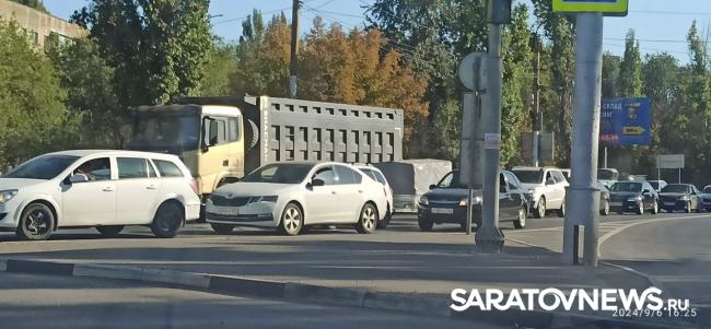 В результате аварии на кольце в сторону улицы Тархова и Вольского тракта образовалась пробка, затруднен выезд из Саратова.
