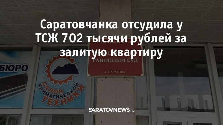 В мае прошлого года квартиру жительницы Саратова затопило из-за прорыва стояка холодного водоснабжения. Пострадала внутренняя отделка и имущество горожанки. Женщина предложила ТСЖ, под чьим управлением находится дом, добровольно возместить ущерб. Но коммунальщики не дали ответа на претензию. Тогда потерпевшая обратилась в суд.
