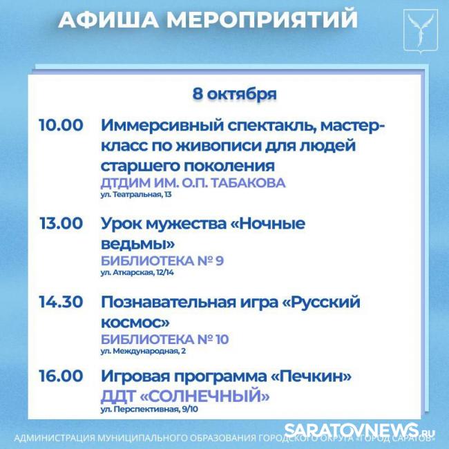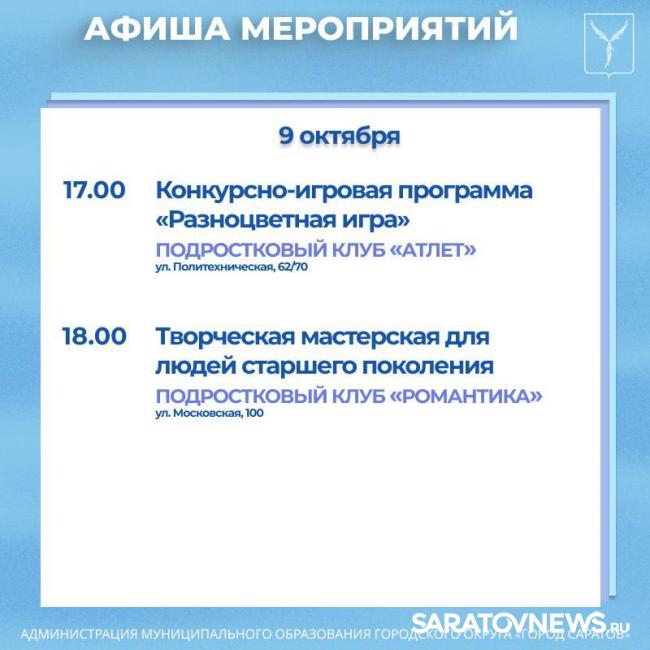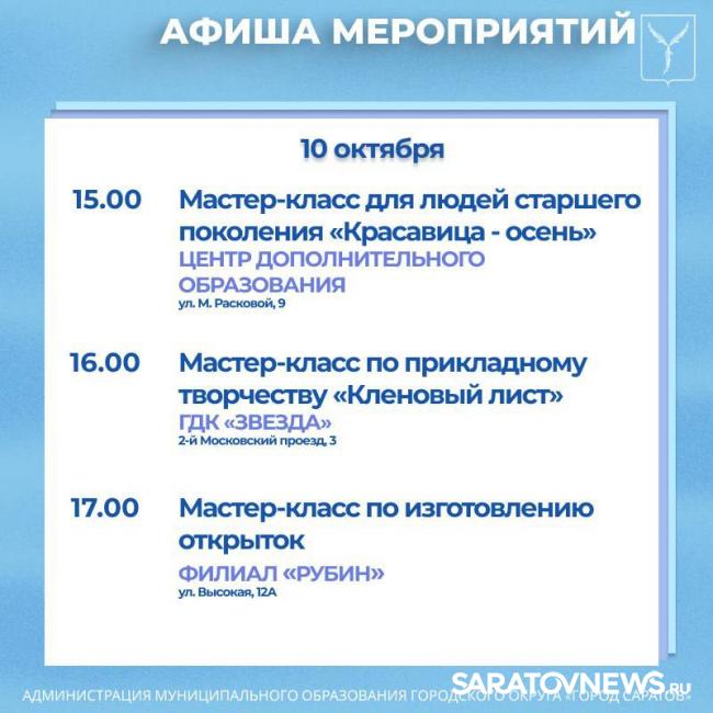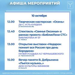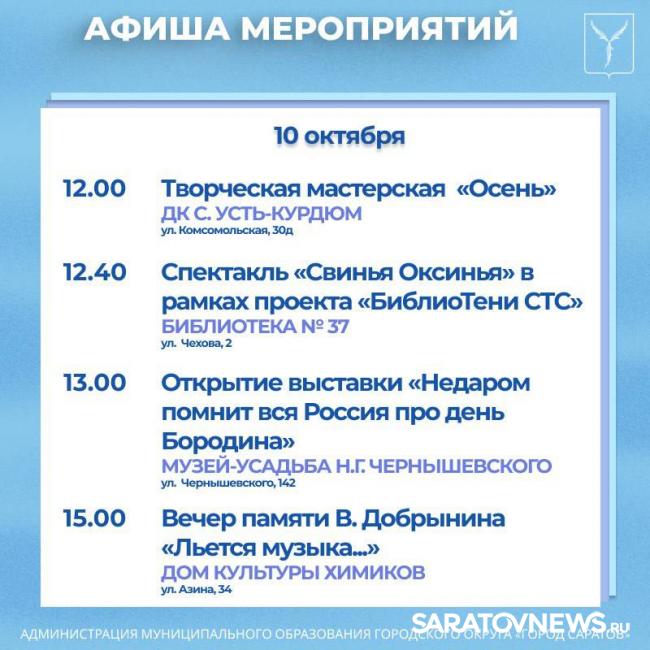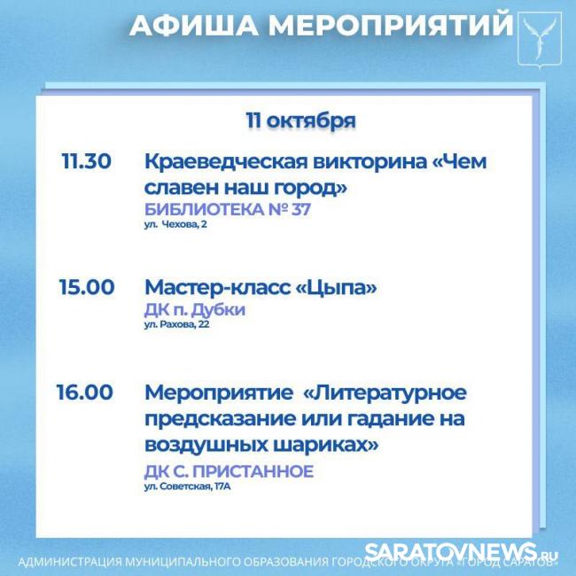 Саратовцев приглашают на мероприятия, организованные учреждениями культуры.