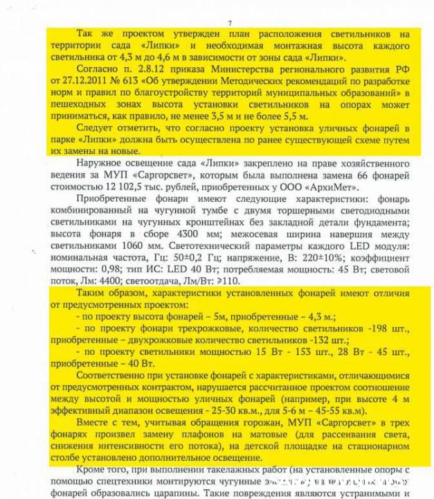 - характеристики установленных фонарей отличаются от предусмотренных проектом. Жители жалуются на некомфортное освещение. По просьбам горожан в трёх фонарях заменены стёкла плафонов на матовые. Необходимо найти решение и исправить проблему с освещением комплексно.