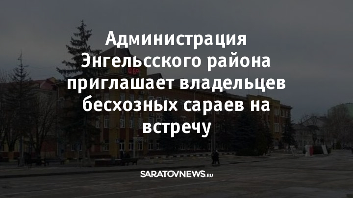 Администрация Энгельсского района проводит мероприятия по выявлению собственников гаражей, сараев и жилья, имеющих признаки бесхозности на встречу. Мероприятие состоится 28 октября в 10.00 в Детской школе искусств №1 (площадь Ленина, 5).