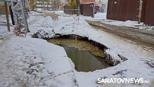 После многочисленных потопов на 1-м Жилучастке в Заводском районе Саратова коммунальщики вырыли яму в районе домов 8А и 10А на улице Киевской. Там некоторое время назад велись работы, сейчас рабочих на объекте не наблюдается.