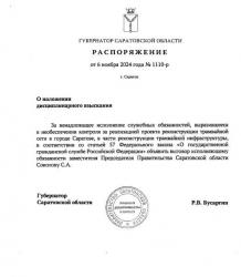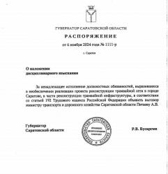 Причиной выговора стала критика работы указанных чиновников в реализации проекта скоростного трамвая в Саратове после осмотра путей главой региона.