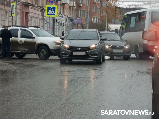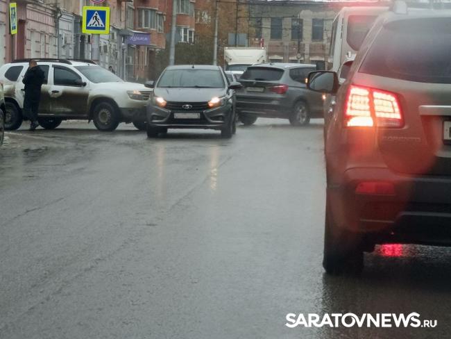 Сегодня, 8 ноября, во Фрунзенском районе Саратова произошло ДТП. На пересечении улиц Вавилова и Железнодорожной столкнулись автомобили Renault Duster и "Лада".