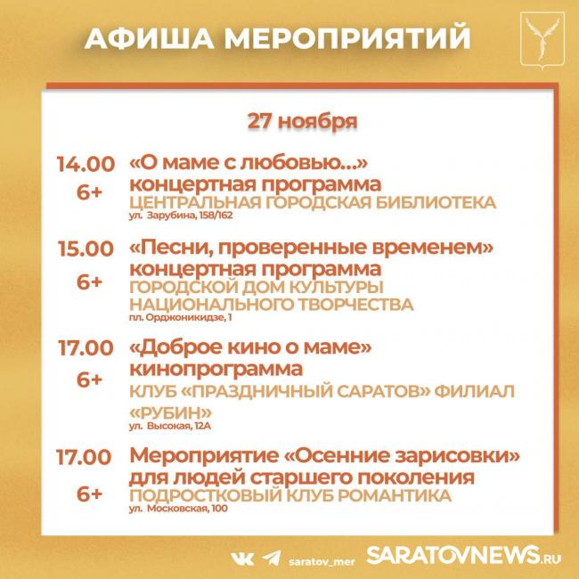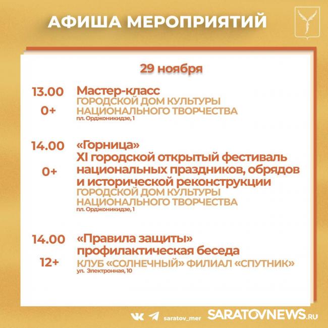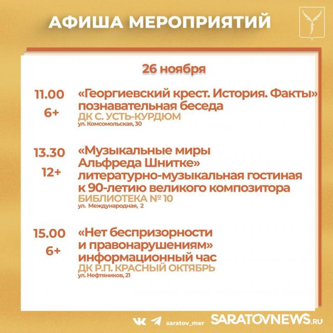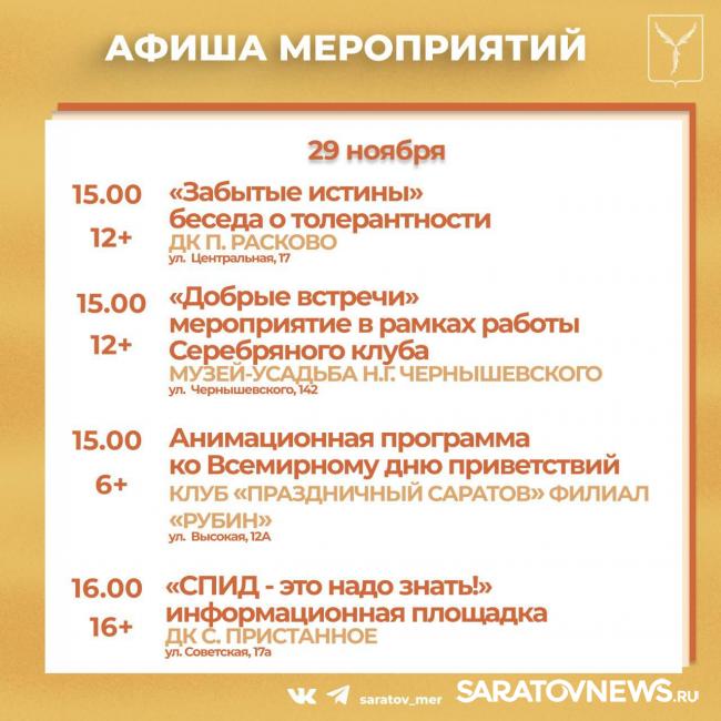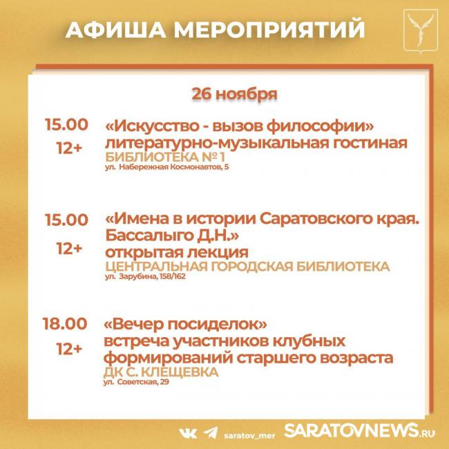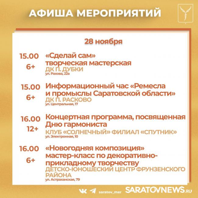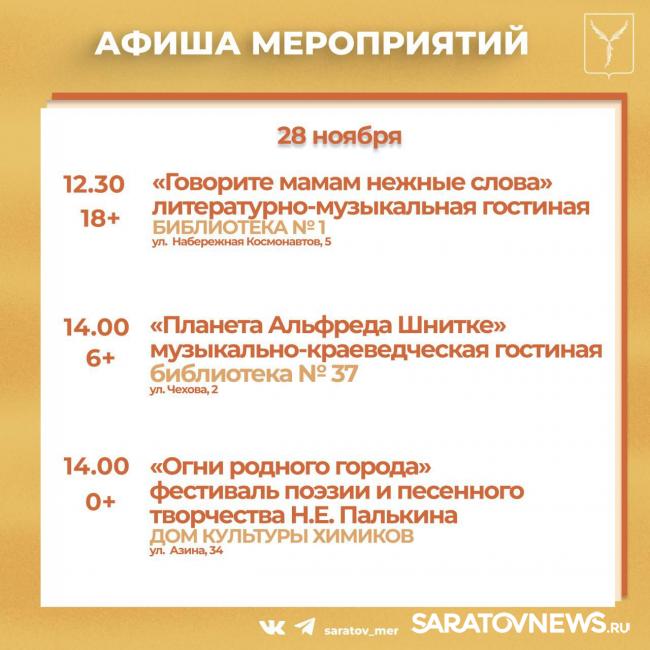 Саратовцам предлагают сходить на мероприятия, которые организовали учреждения культуры города.