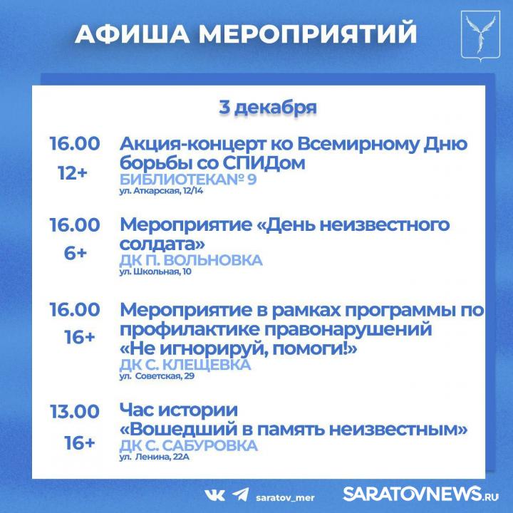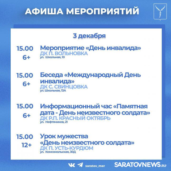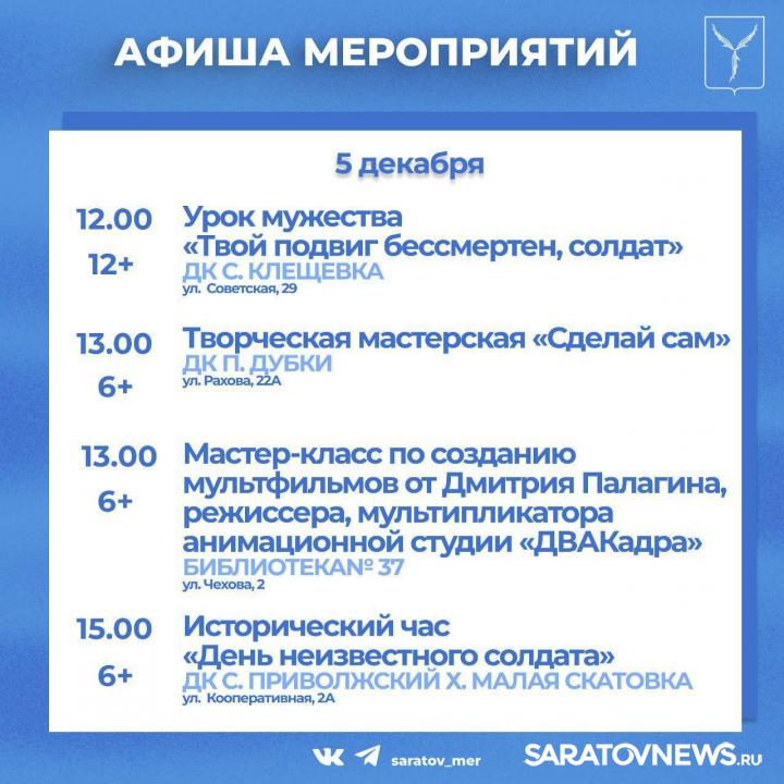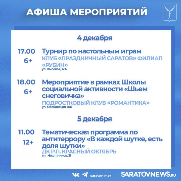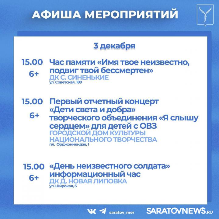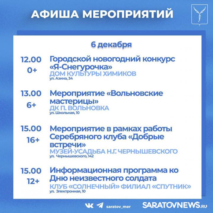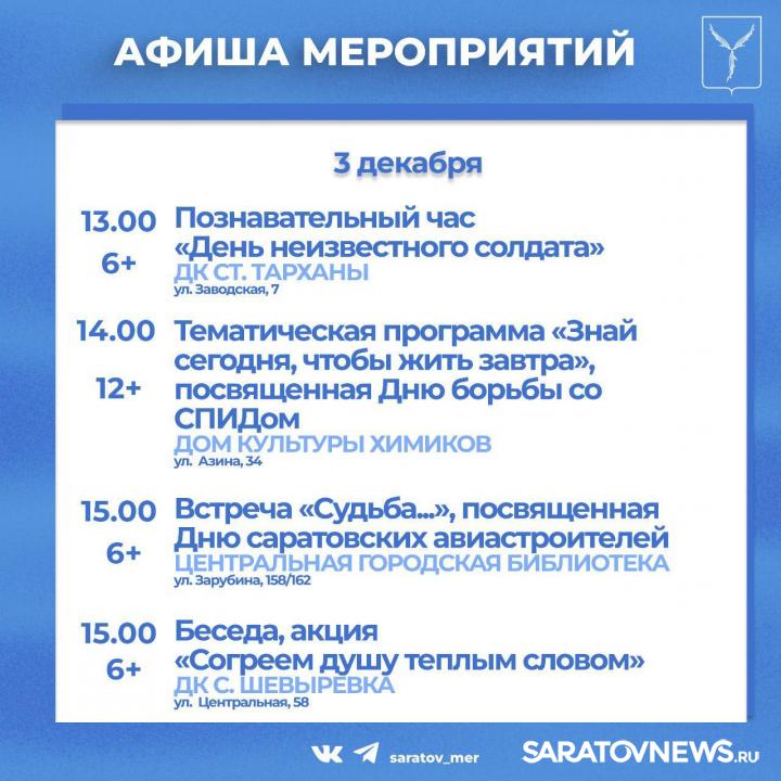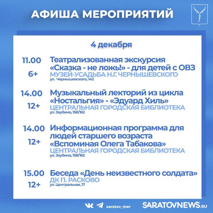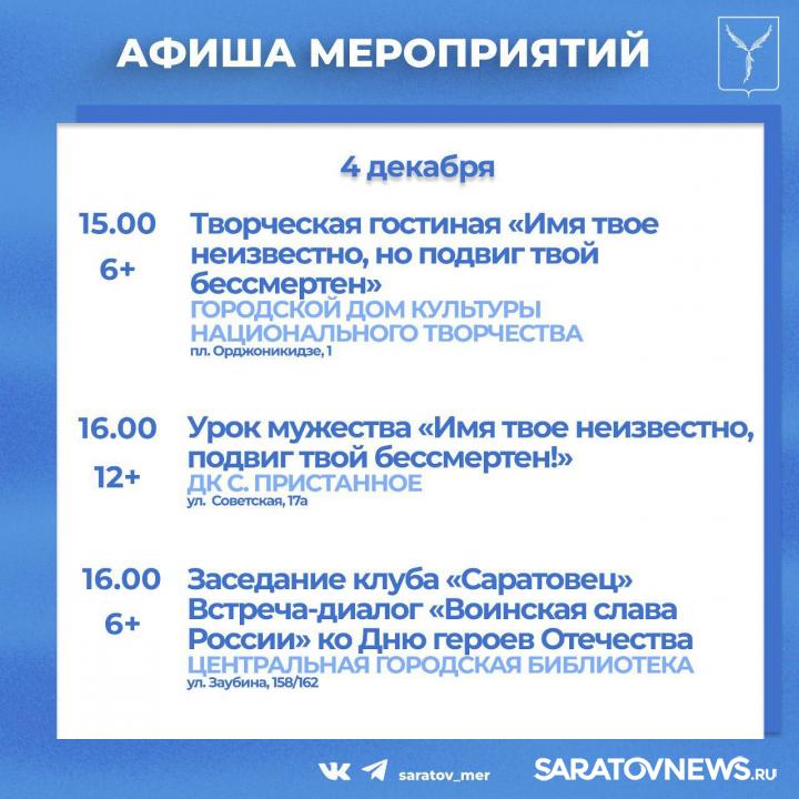 Жителей и гостей города приглашают мероприятия, организованные учреждениями культуры Саратова.