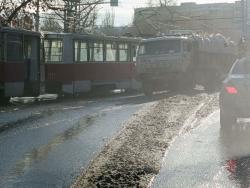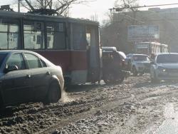 Трамвай перегородил две полосы. В результате движение в сторону проспекта 50 лет Октября затруднено, машины объезжают место аварии по встречке. Прервано движение троллейбусов № 5 и № 5а, трамваев № 3.