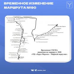 Пассажиров просят быть внимательными и заранее планировать свои поездки с учётом изменений в маршруте автобуса № 90.