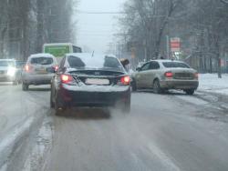Машины встали в правой и средней полосе, их объезжают по встречке. В результате движение транспорта затруднено, в сторону улицы Орджоникидзе образовалась пробка.