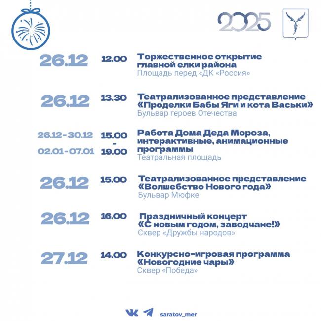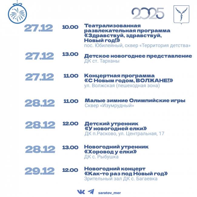 В Саратове подготовлены мероприятия, посвященные Новому году. Об этом сообщает администрация города.