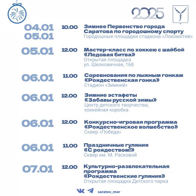 Саратовцев ждут театрализованные представления, зимние эстафеты, новогодние спектакли, ледовые битвы, праздничные концерты и мастер-классы.