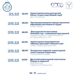 А 25 декабря состоится открытие главной новогодней елки Саратова на Театральной площади. Начало в 18:00. Подробнее о событиях можно узнать в карточках ниже.