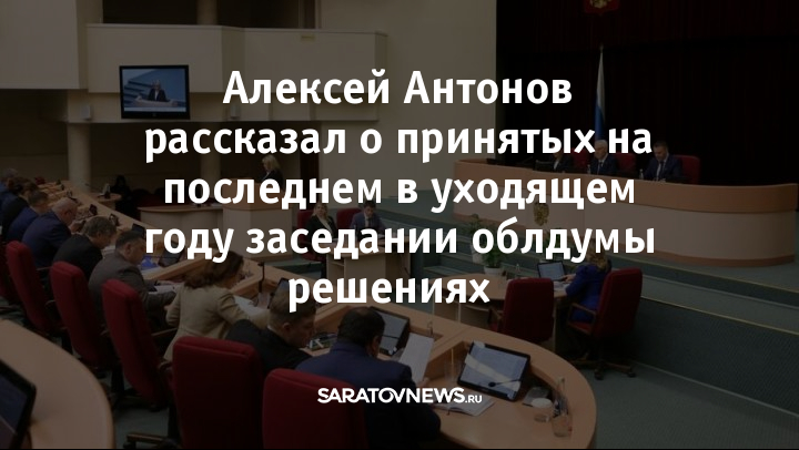 Председатель Саратовской областной Думы Алексей Антонов прокомментировал итоги заключительного в этом году заседания регионального парламента.
