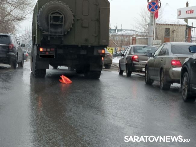 Военная техника попала в аварию перед мостом «Саратов – Энгельс». ДТП случилось на перекрестке с улицей Чернышевского.