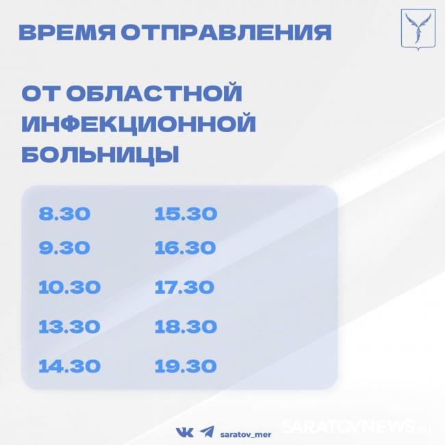 "Маршрут следует от стадиона «Волга» - улица Чернышевского – ж/д вокзал – ЦКР – Областной онкологический центр - площадь Ленина – улица Панфилова – улица Буровая - Саратовская областная инфекционная больница", - уточнили в мэрии.
