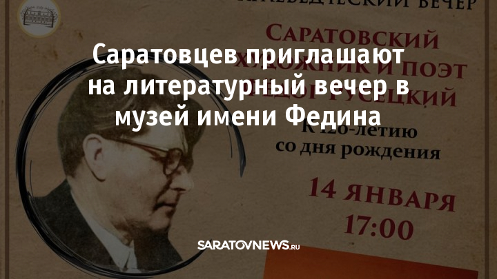 Жителей и гостей Саратова приглашают в музей имени К.Федина на литературно-краеведческий вечер, посвященный 120-летию со дня рождения поэта и художника Федора Русецкого.