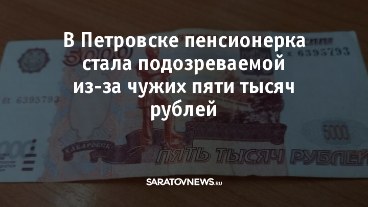 В конце декабря прошлого года 63-летний житель Петровска, находясь в магазине по улице Московской, потерял 5000 рублей. Поиски купюры оказались безрезультатными. В январе этого года мужчина обратился в полицию. Было возбуждено уголовное дело по статье «Кража».