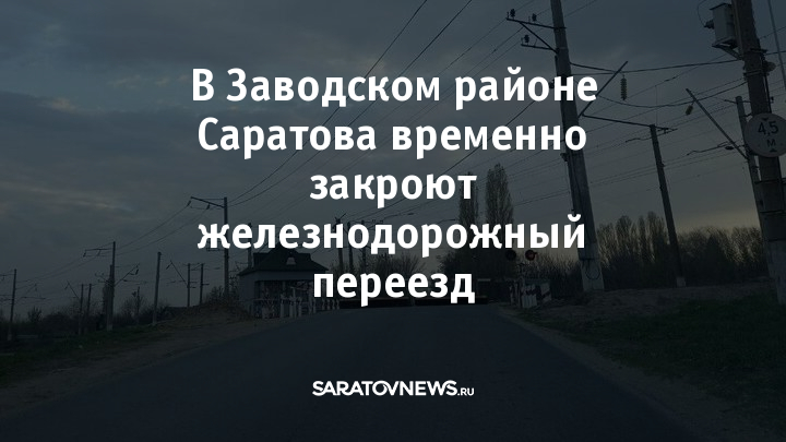 15 января с 9 до 16 часов в Заводском районе Саратова для движения автотранспорта закроют железнодорожный переезд на 5 км перегона Саратов-3 – Князевка (в месте пересечения с улицей Томской). Как пояснили в пресс-службе Приволжской железной дороги, это связано с ремонтными работами.