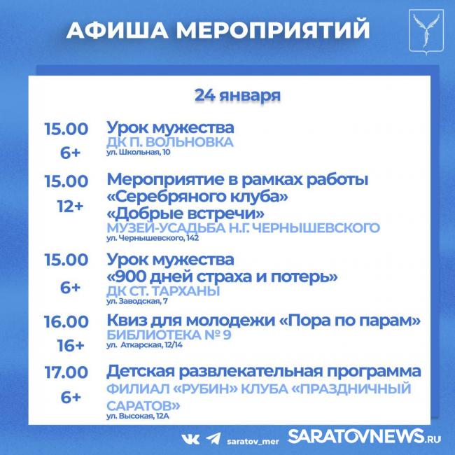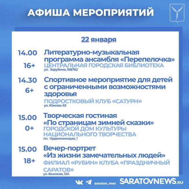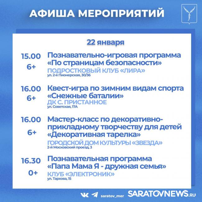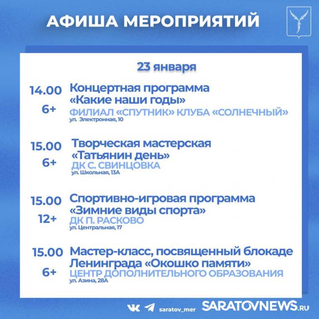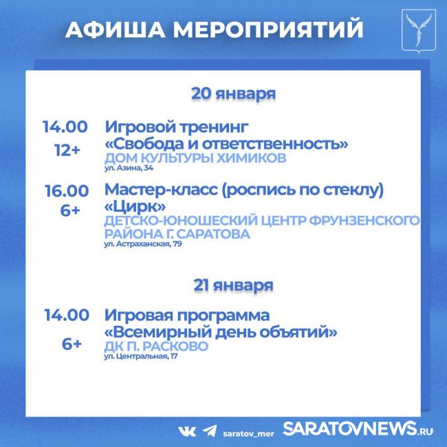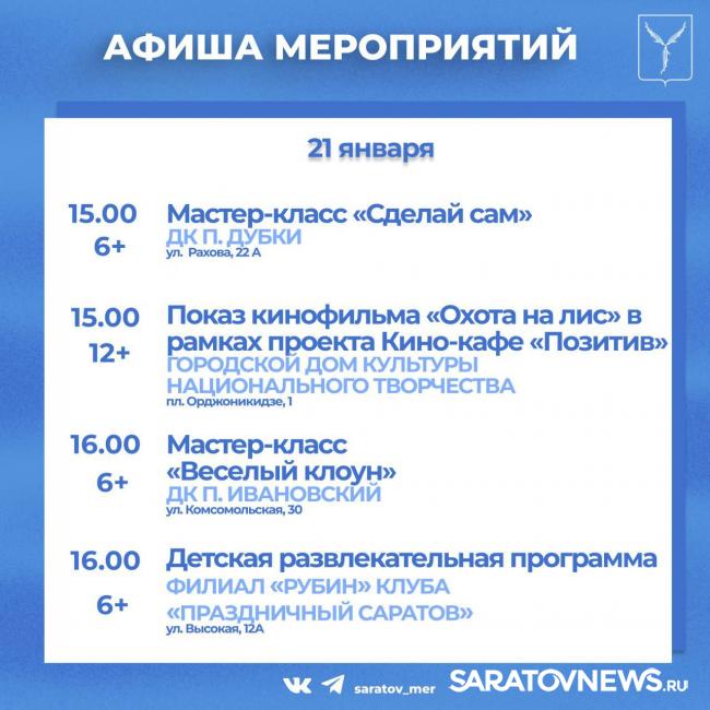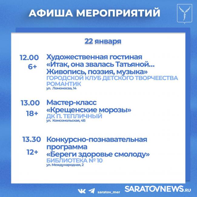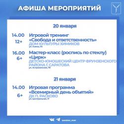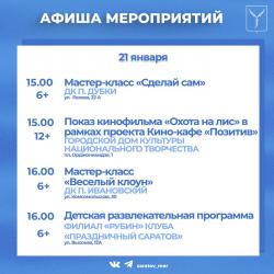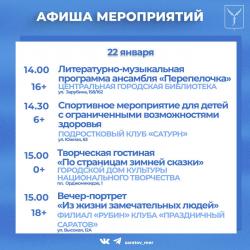 Саратовцев приглашают на посленовогодние мероприятия, организованные учреждениями культуры города Саратова.