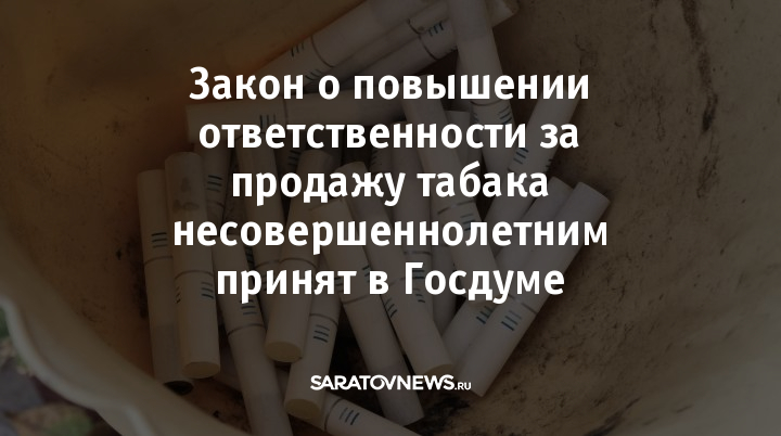 В Государственной Думе единогласно приняли закон, который повышает ответственность за продажу табачных изделий и никотинсодержащей продукции несовершеннолетним, рассказали в паблике сторонников Вячеслава Володина…