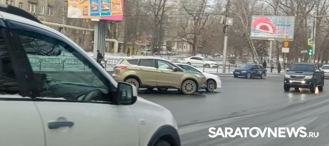 Две иномарки создали пробку на "Стрелке" в Саратове