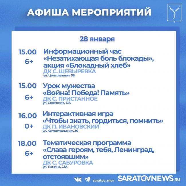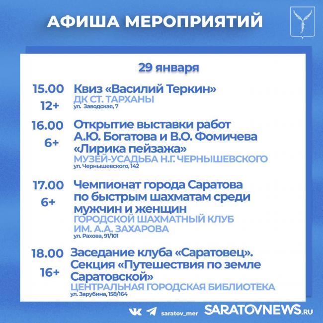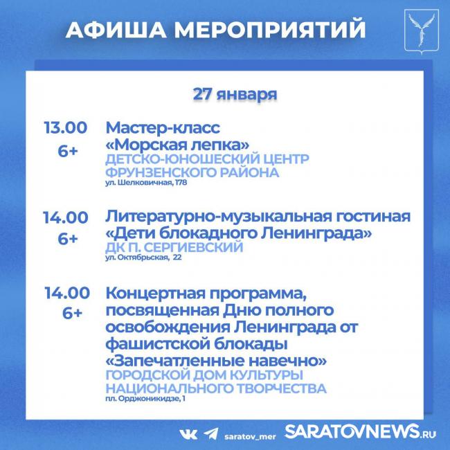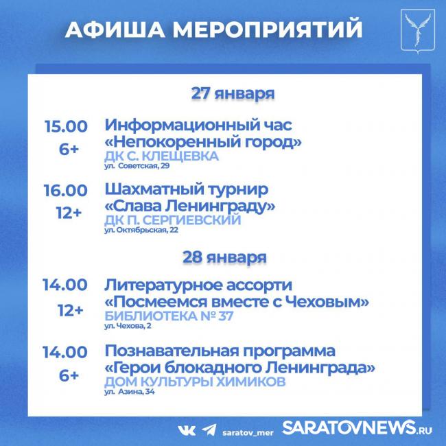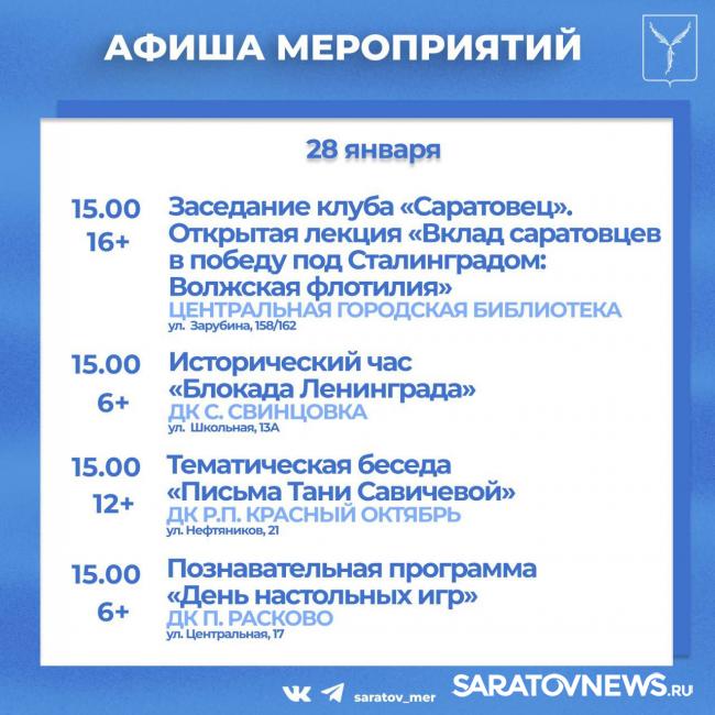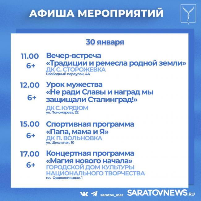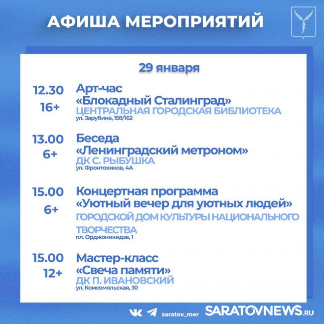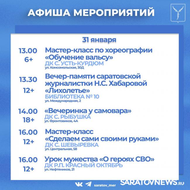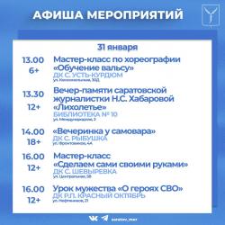 Саратовцев приглашают сходить на мероприятия, организованные учреждениями культуры города.
