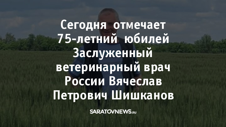 Сегодня отмечает 75-летний юбилей Заслуженный ветеринарный врач России Вячеслав Петрович Шишканов. Он возглавлял ветеринарную службу Аркадакского района 45 лет и внес большой вклад в развитие ветеринарии района и области.