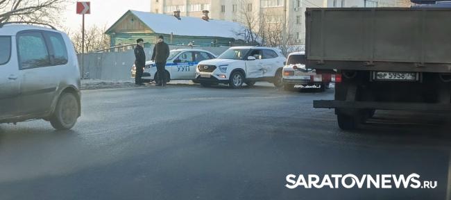 У микрорайона Стрелка в Саратове произошла тройная авария. На улице Большой Садовой столкнулись автомобили "Лада" (принадлежащий полиции), "семерка" и Hyundai. О происшествии сообщают очевидцы.