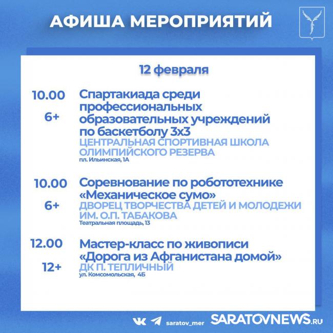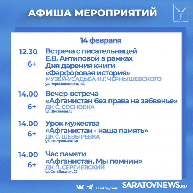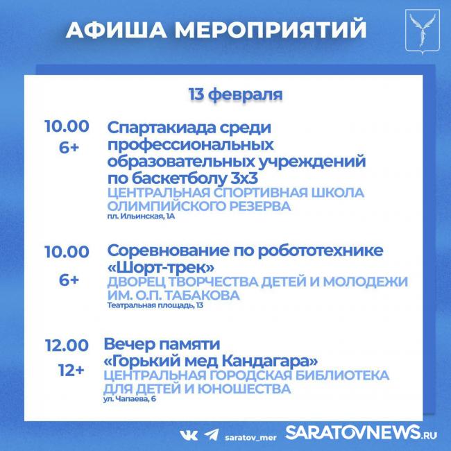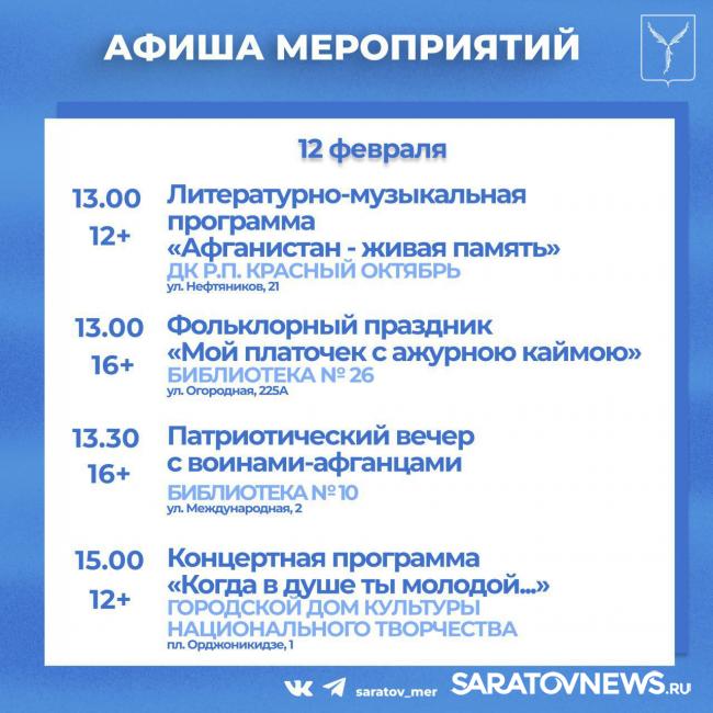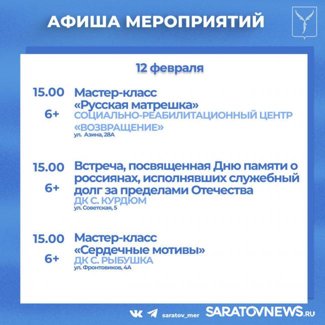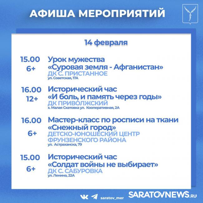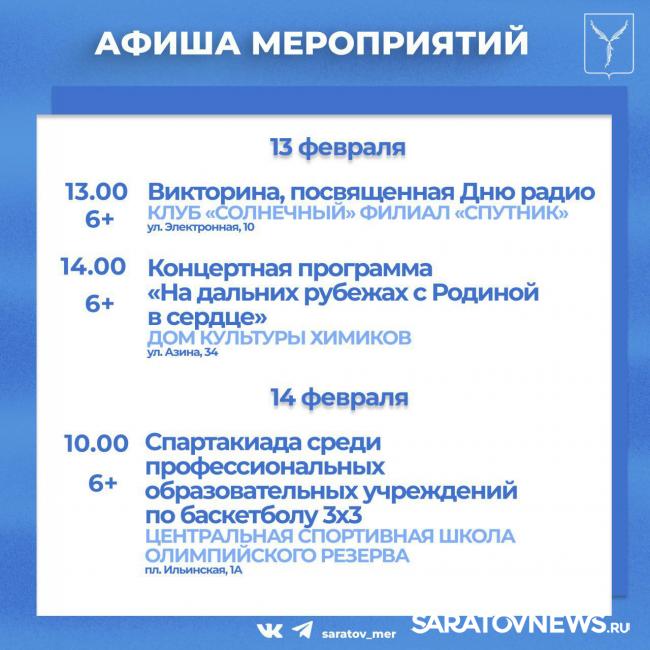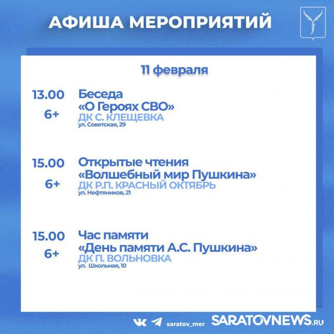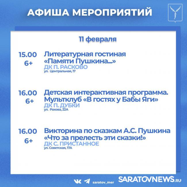 Для саратовцев учреждениями культуры организованы мероприятия на эту неделю. Об этом информирует мэрия.