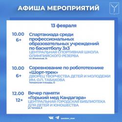 Жителей города ждут концерты, творческие вечера, викторины, соревнования, познавательные программы, они пройдут во всех районах города. Вход бесплатный.