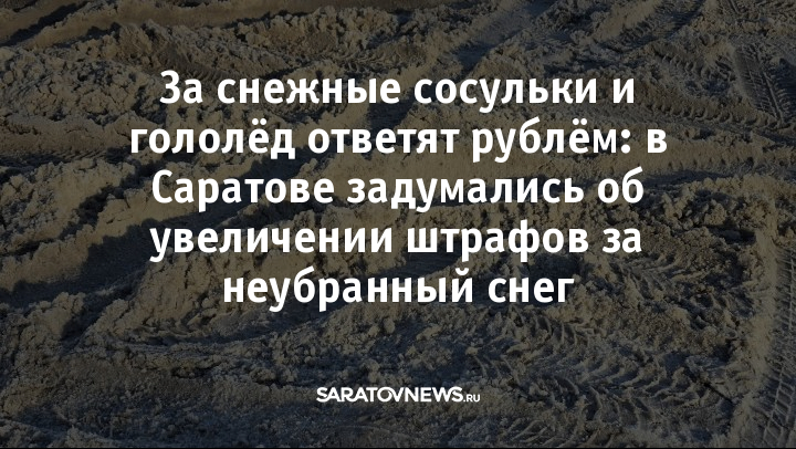 В Саратове задумались об увеличении штрафов за неубранный снег и сосульки. С такой инициативой выступил председатель комитета муниципального контроля администрации города Лев Юсупов. По его словам, сейчас размер штрафов несопоставим с возможными последствиями для людей, которые могут пострадать от падающих сосулек и скользкого льда.