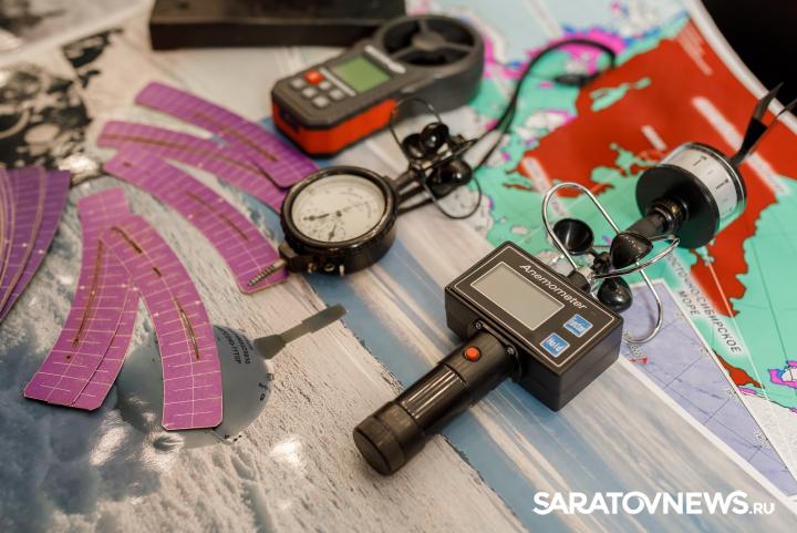 Презентация проекта «Челюскин. Первые» (18+) прошла в кинотеатре «Победа». Организаторы постарались подчеркнуть арктическую атмосферу. В фойе гостей встречала фотовыставка «Волга со льдом» заведующего кафедрой метеорологии и климатологии СГУ Максима Червякова, который не раз бывал в полярных экспедициях. На локации Русского географического общества можно было разглядеть во всех подробностях гидрологическое и метеорологическое оборудование. В импровизированном палаточном лагере желающих сфотографироваться ждали хаски – собаки этой породы помогали челюскинцам перевозить людей и грузы.