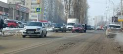 Авария случилась в левом среднем ряду. В результате на указанном участке и в сторону улицы Радищева движение транспорта затруднено, отмечают автомобилисты.