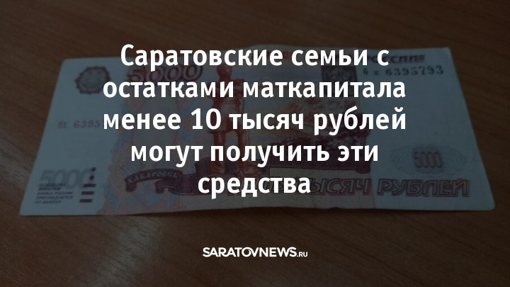 В саратовской области семьи, у которых осталось менее 10 тысяч рублей материнского капитала, могут получить эти средства.