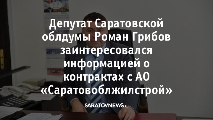 Депутат Саратовской областной Думы Роман Грибов заинтересовался информацией о контрактах с АО «Саратовоблжилстрой».