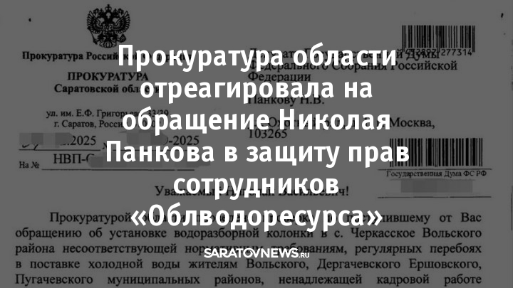 Депутат Госдумы Николай Панков в своем телеграм-канале «Пара слоV» поделился результатами депутатского запроса. Он сообщил, что сотрудникам Вольского отделения «Облводоресурса» сделали перерасчёт заработной платы на общую сумму более 1 млн рублей.