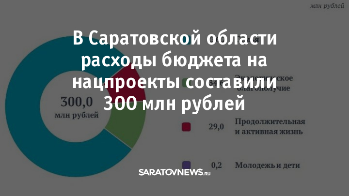 В январе текущего года в Саратовской области расходы бюджета на реализацию нацпроектов составили 300 млн рублей, из них за счет федеральных средств – 80,3 млн рублей.