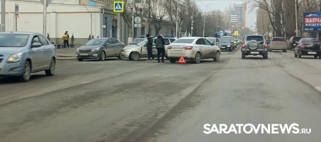 На улице Чернышевского в Саратове только что произошло ДТП. У перекрестка с улицей Новоузенской столкнулись две "Лады".