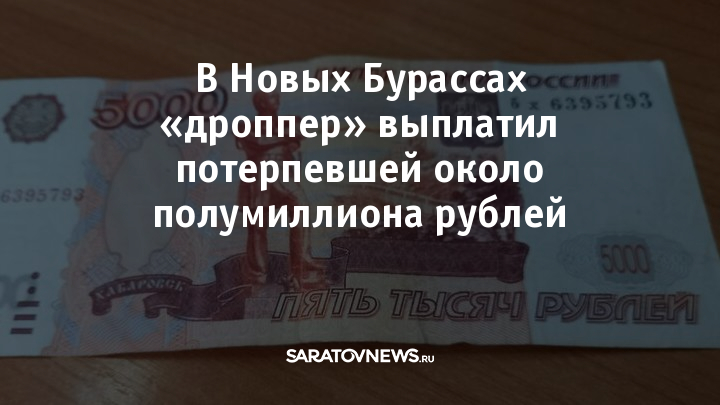 В Новобурасском районе «дроппер» выплатил потерпевшей 450 тысяч рублей.